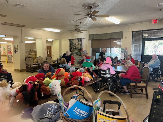 The Sunshine Ladies helped the residents at Hammond Nursing Home celebrate the holiday season with a Christmas-themed Bingo on Friday, December 19. There were loads of prizes for the residents, and light refreshments were served after the games. The residents really enjoyed the Bingo and the treats! All the Bingo players were given stuffed animals, and in addition, every resident in the home was given a small gift of warm socks. Members who helped with the Bingo included Anita Murray, Gail Riche, Sheila Gagliano, and President Ann Bourliea. Also assisting was Eli Watts, grandson of Ann Bourliea.